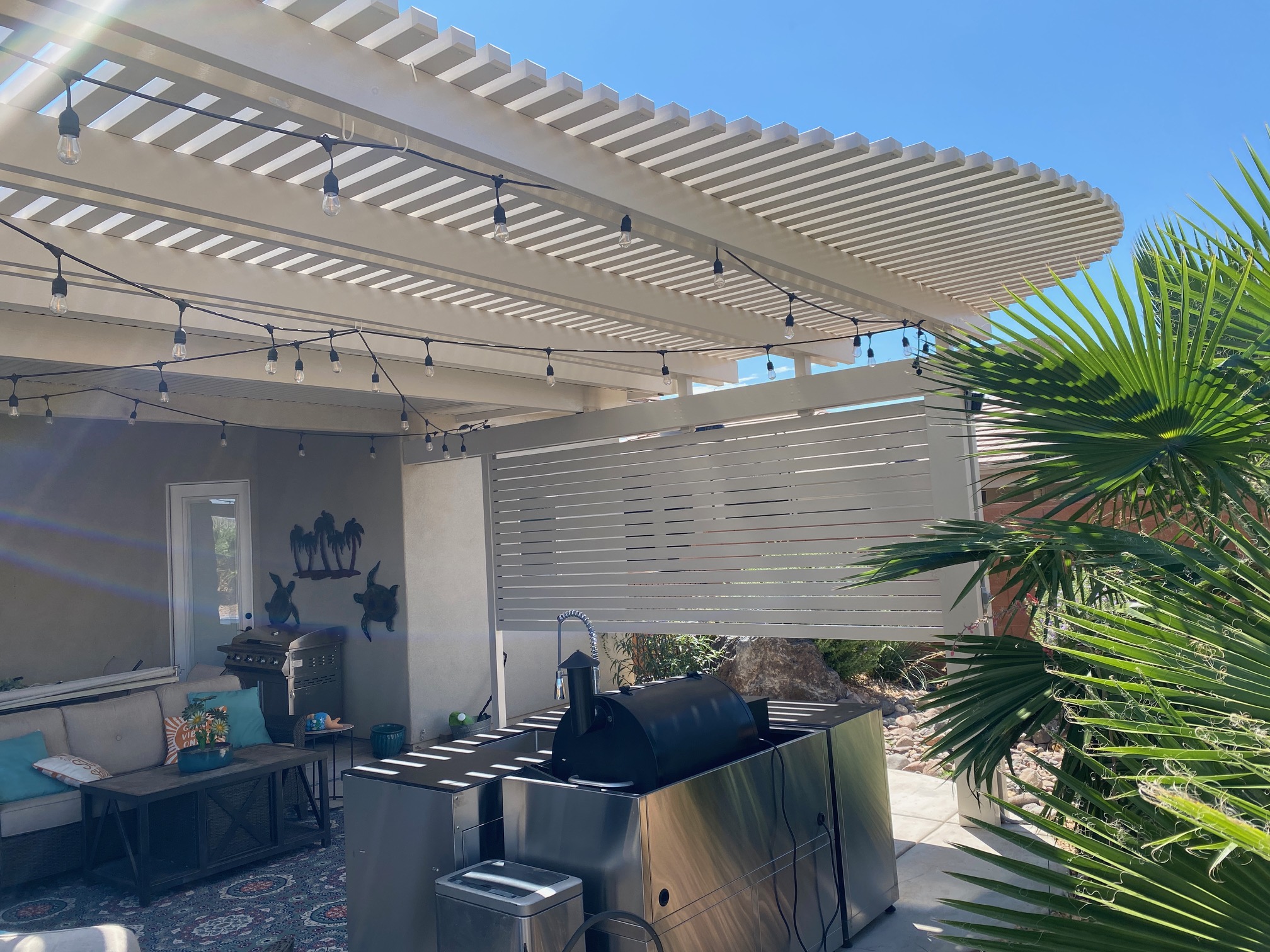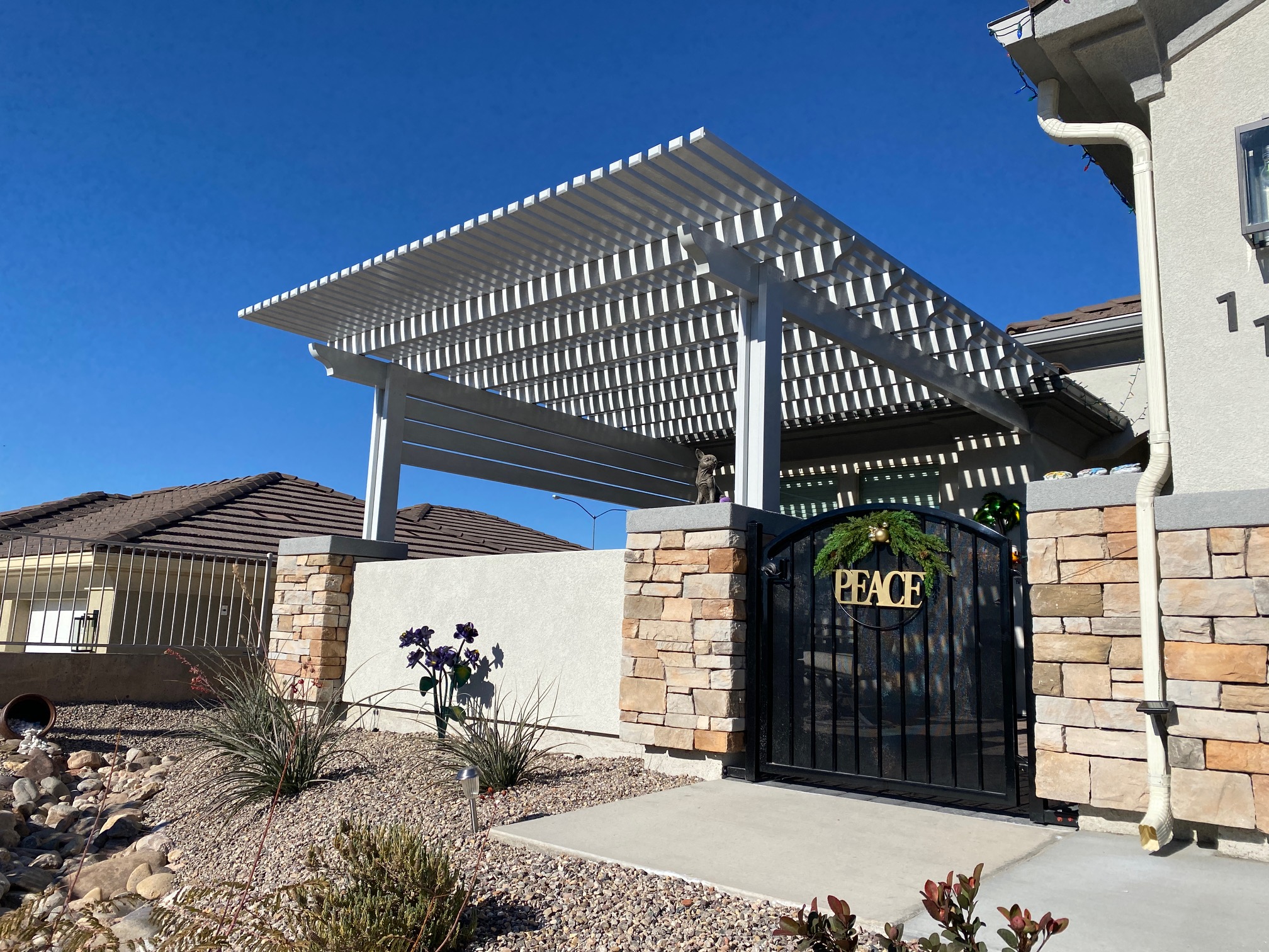 A lattice shade cover is a partially open patio cover made with crisscrossed slats that allow filtered sunlight to pass through while still reducing heat and glare. This design creates a comfortable outdoor environment without completely blocking natural light—ideal for enjoying the beautiful climate in St. George and surrounding areas.